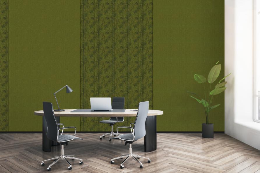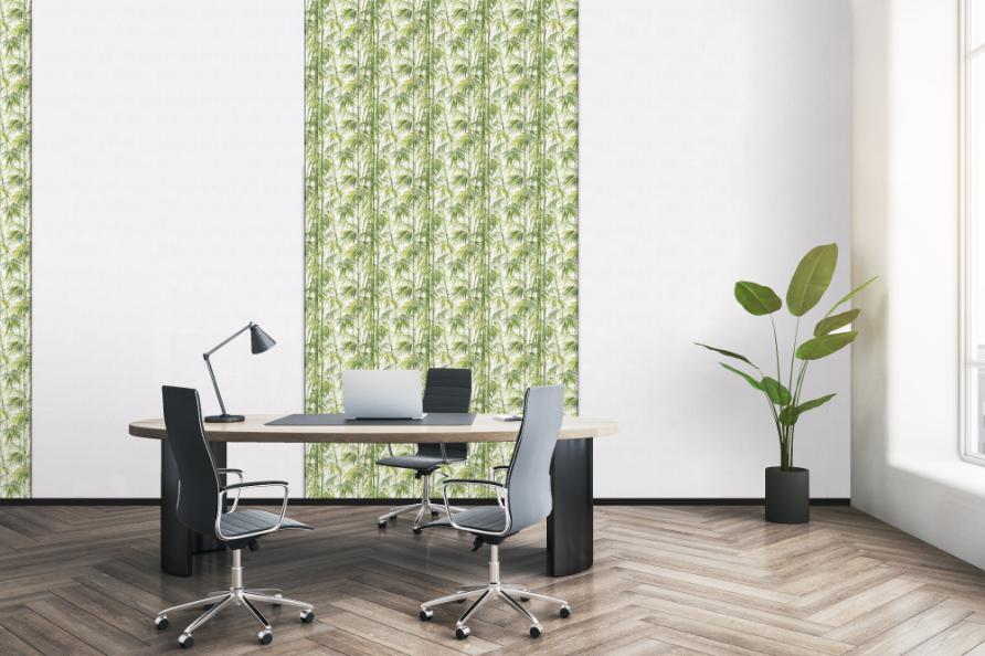 3Slender green bamboo stalks rise gracefully across the surface, creating a dynamic pattern fabric design. The vertical lines bring a sense of calm structure and natural rhythm, making it an elegant blend of pattern and fabric.