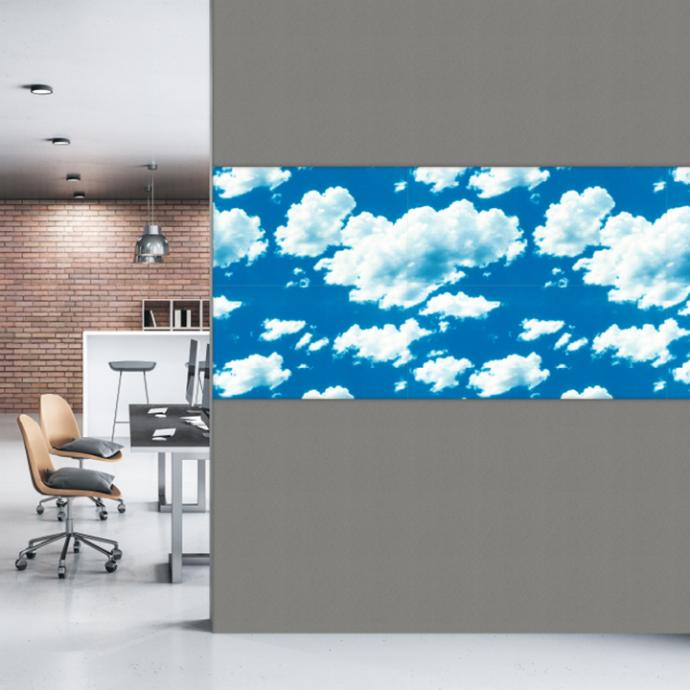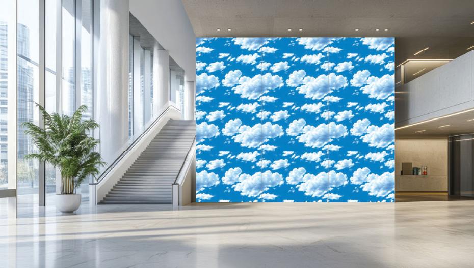 3Expansive and vivid, this pattern captures a deep blue sky filled with billowing clouds in various forms. The play of light creates an airy design that brings a sense of calm. As a fabric for walls, it adds atmosphere and scale—perfect for spaces seeking a serene, uplifting vibe.
