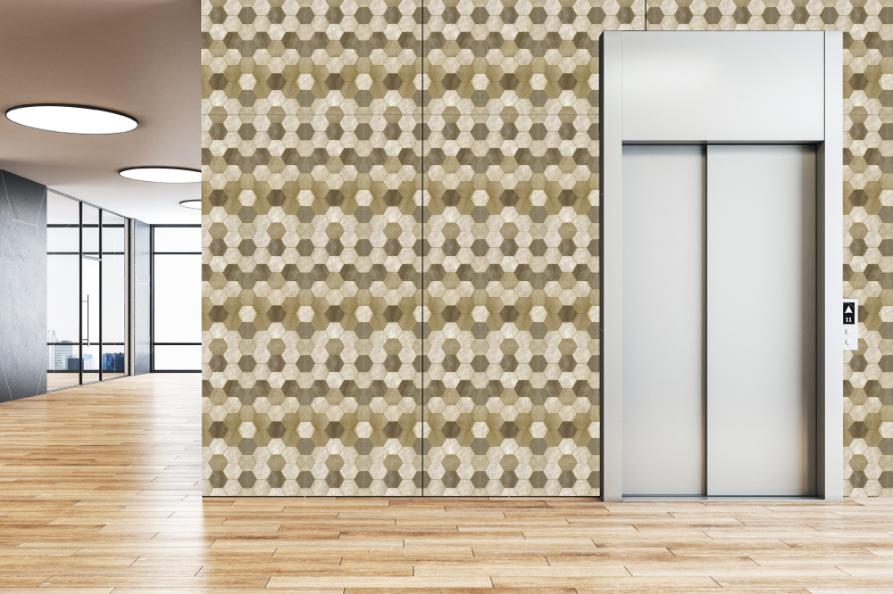 3Uniform hexagon tiles form a loosely arranged checkerboard, offering structure without rigidity. A thoughtful blend of pattern and fabric, it captures the quiet character of built surfaces found in everyday environments.