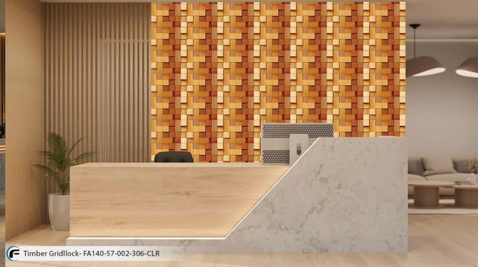 This pattern features wooden rectangles in varied finishes and depths. The layered look brings warmth and rhythm to any surface, making it a standout pattern fabric design. It delivers a natural, tactile aesthetic that elevates the space without overpowering it.
