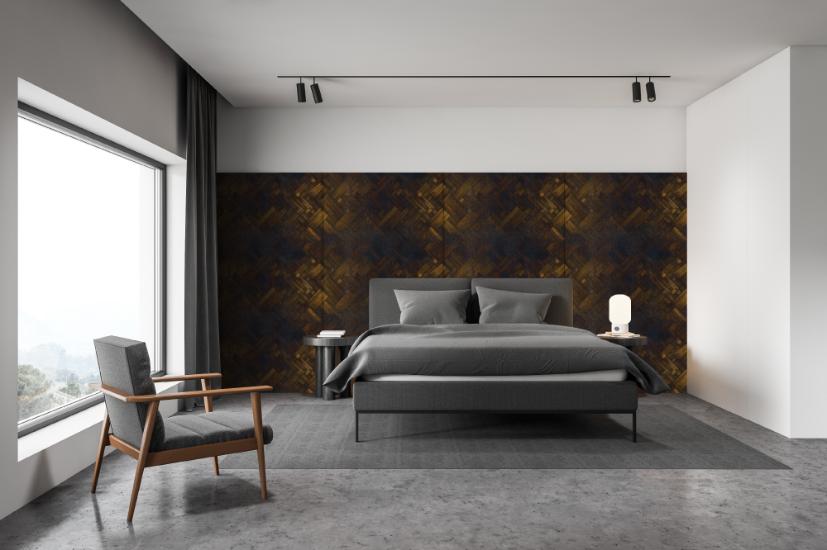 3This pattern arranges wood-like rectangles at a diagonal, creating a bold zigzag flow that feels both directional and grounded. The variation in tone adds character, giving the pattern for fabric a tactile presence. As fabric for walls, it brings warmth and a handcrafted sensibility to any environment.