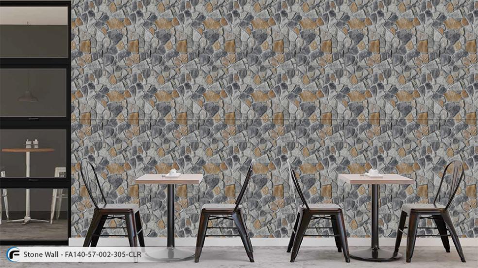 This pattern captures the rugged charm of a cobblestone wall, with varied stones and subtle tonal shifts that add visual weight and texture. A tactile pattern for fabric that brings natural character into modern spaces. It introduces a bold surface that adds richness to any interior.
