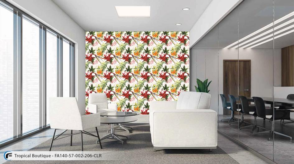 Tropical Boutique offers a vibrant burst of color with rich hues. This bold pattern fabric commands attention and brings dynamic energy to any space. Perfect as a fabric for walls, it creates a lively focal point that transforms interiors with tropical sophistication.