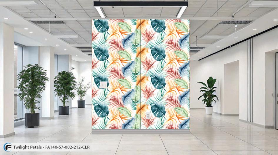 Twilight Petals layers an array of watercolor-painted leaves creating a soft, expressive pattern fabric with natural rhythm. The blend of organic forms and gentle color brings an atmospheric quality to interiors.