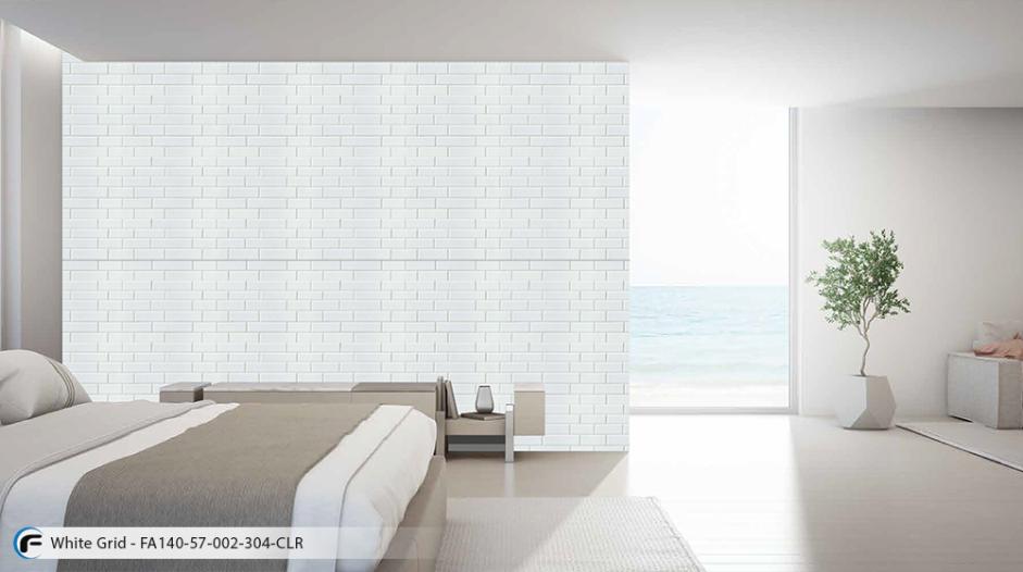 This pattern features clean, white rectangular tiles arranged with quiet precision, echoing the scale and rhythm of classic brickwork. Its simplicity brings a sense of order and brightness, making it a refined pattern fabric design for modern interiors. When used as a wall fabric covering, it introduces subtle structure and visual clarity without overwhelming the space.