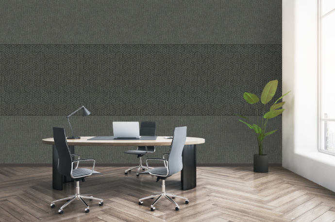 - Acoustical, tackable, and wall protection, all in one product for walls and ceiling.