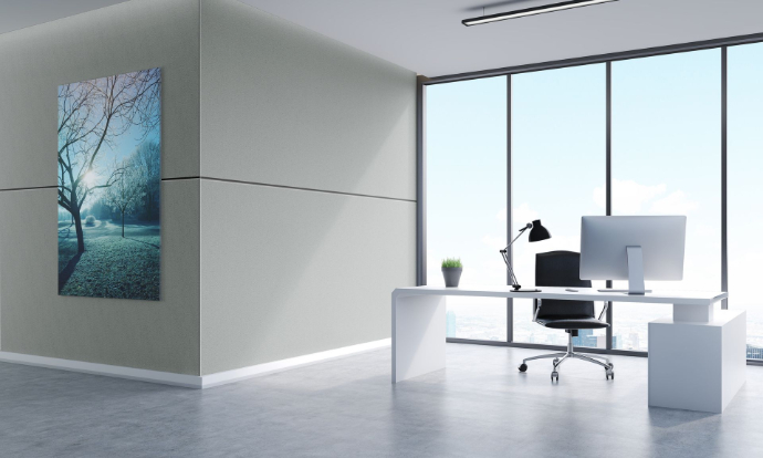 - Acoustical, tackable, and wall protection, all in one product for walls and ceiling.